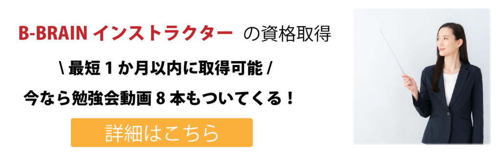 ・B-BRAINインストラクター育成 ・B-BRAINテスト&カウンセリング ・B-BRAINインストラクター向け勉強会 ・売上アップや目標達成のための「左脳講座」